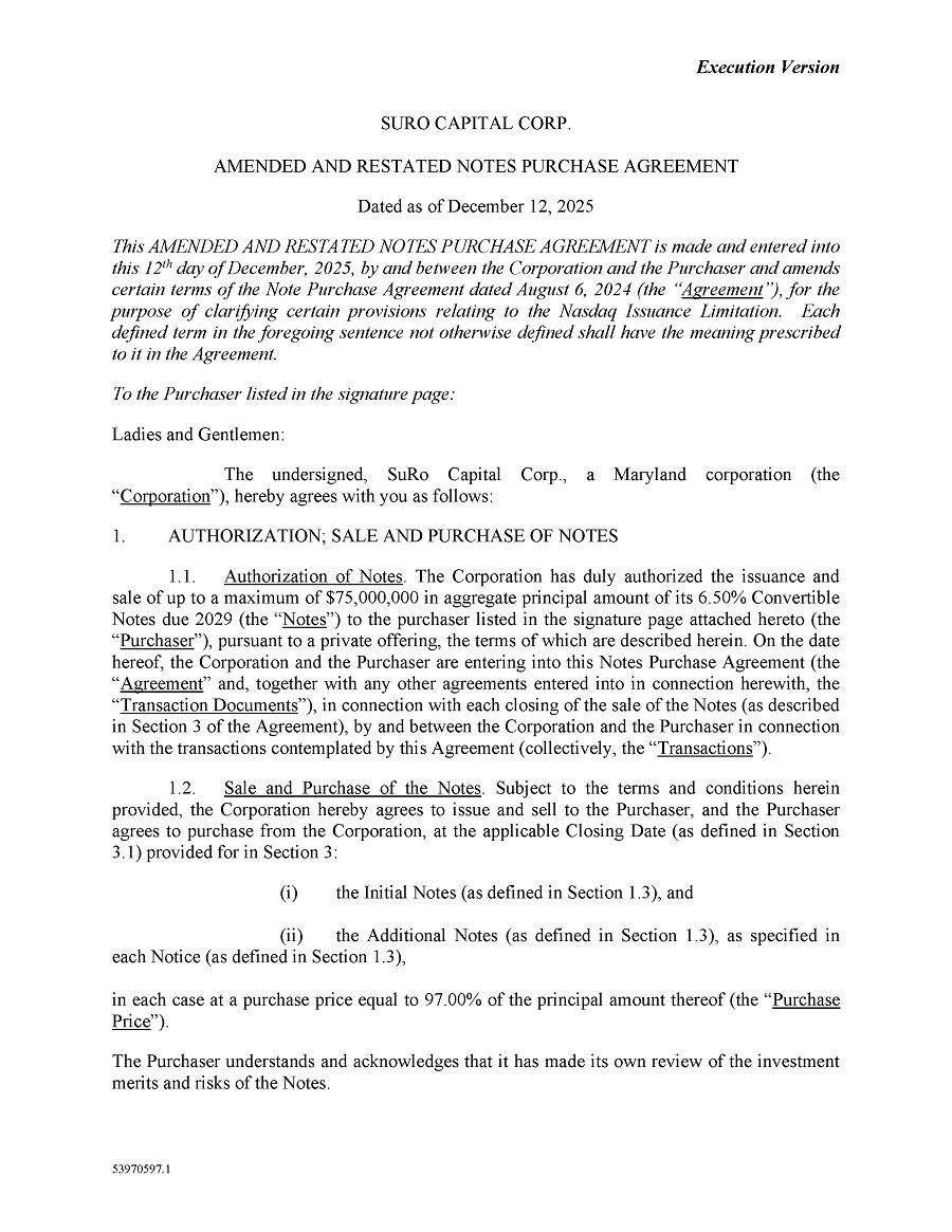 In connection with the annual report on Form 10-K for the year ended December 31, 2025 (the “Report”) of SuRo Capital Corp. (the “Registrant”), as filed with the Securities and Exchange Commission on the date hereof, I, Mark D. Klein, the Chief Executive Officer of the Registrant, hereby certify, to the best of my knowledge, that: