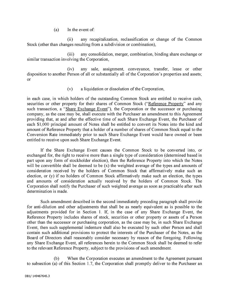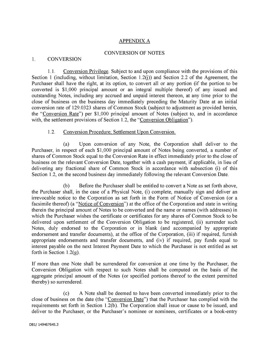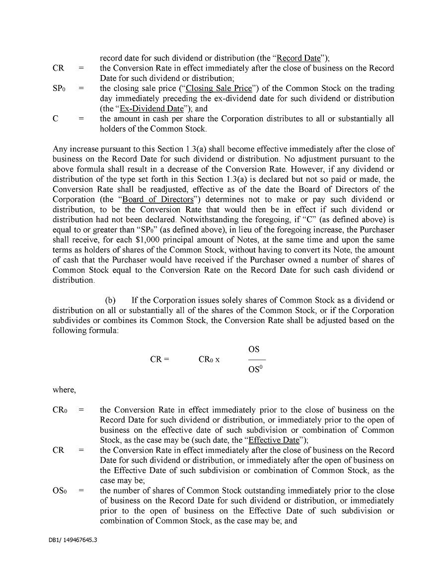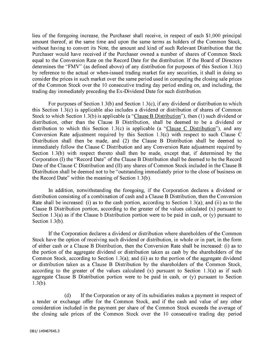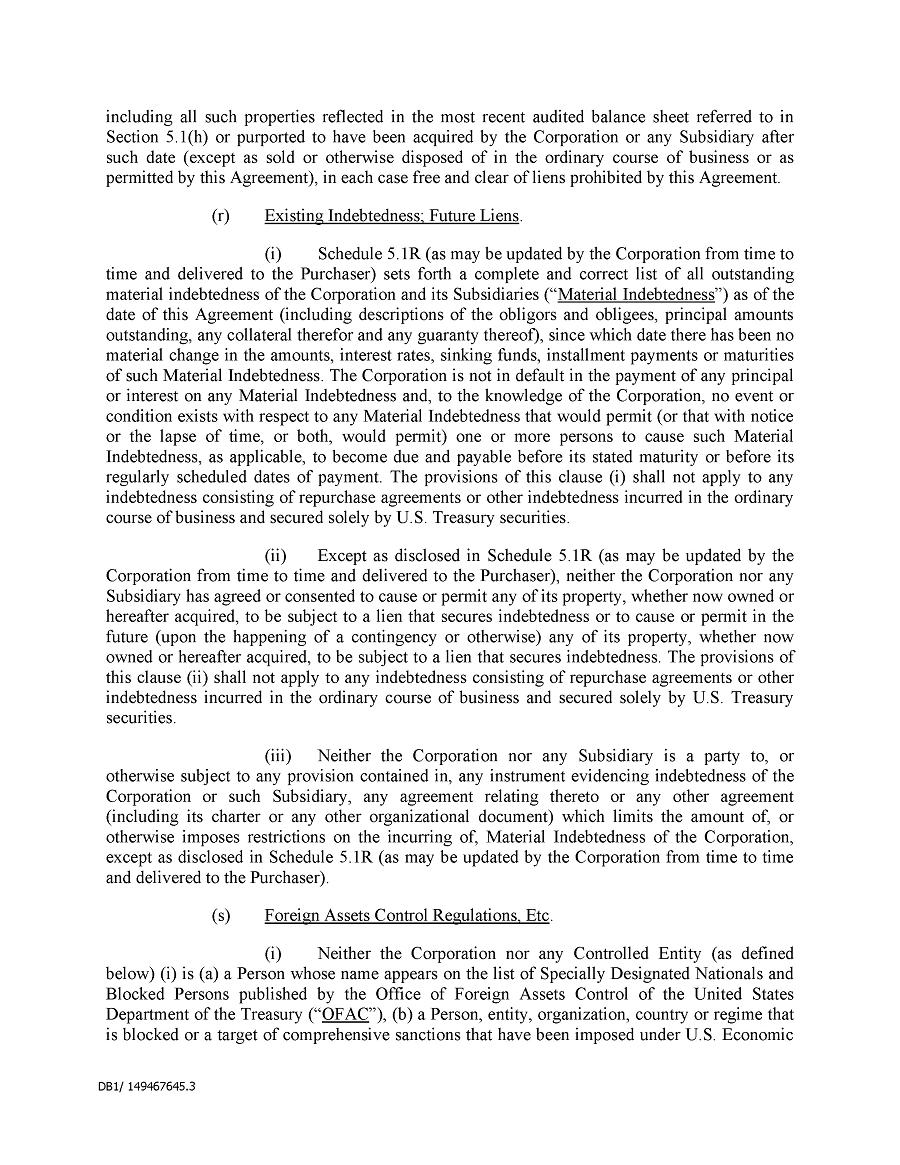 Dividend Reinvestment Plan. If you participate in the Company’s dividend reinvestment plan, this policy does not apply to purchases of the Company’s securities under that dividend reinvestment plan resulting from your automatic reinvestment of dividends paid on the Company’s securities. However, your election to participate in the dividend reinvestment plan, or to increase your level of participation in the plan, would be subject to this policy, including its applicable black-out periods. The policy also applies to your sale of any of the Company’s securities purchased pursuant to the plan.
