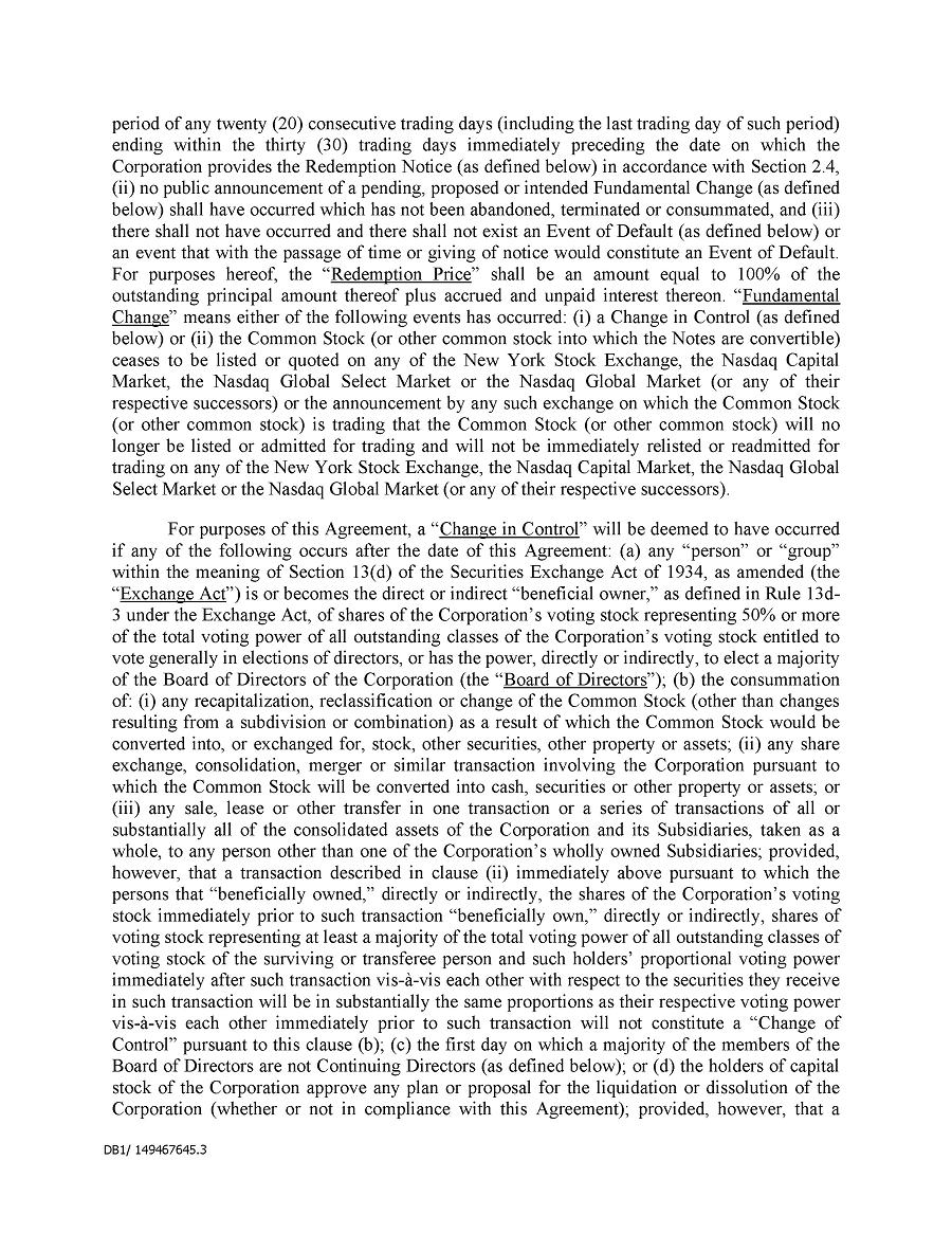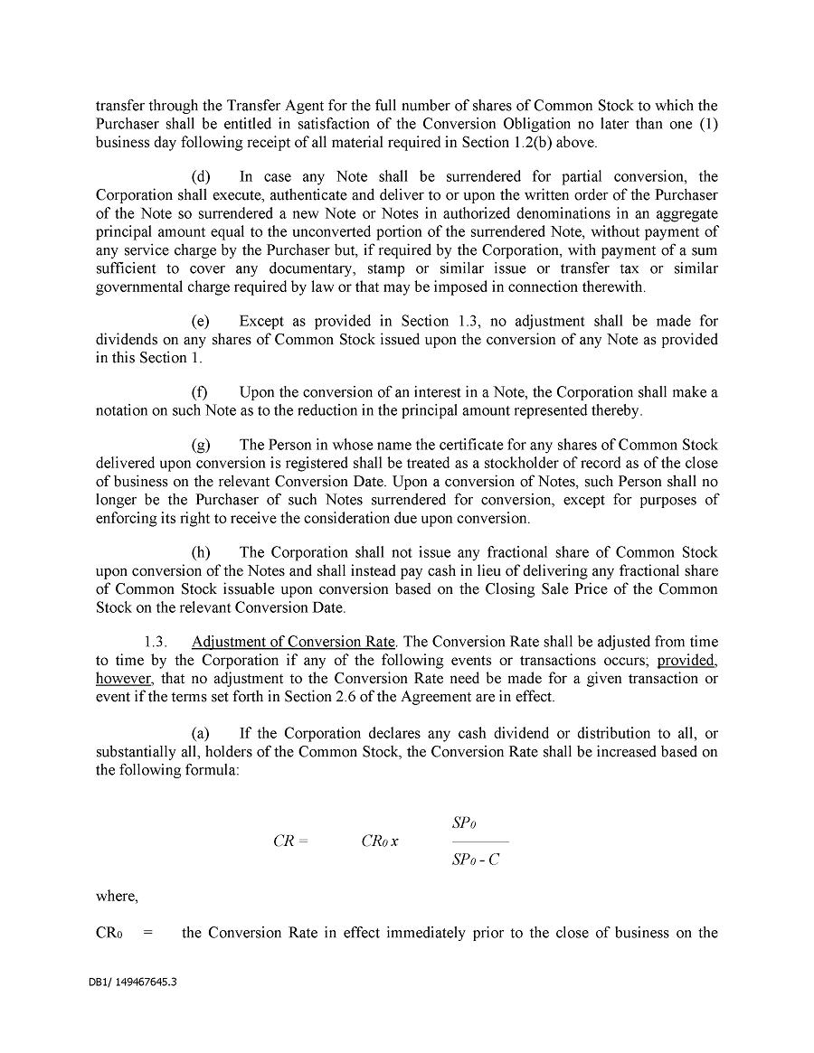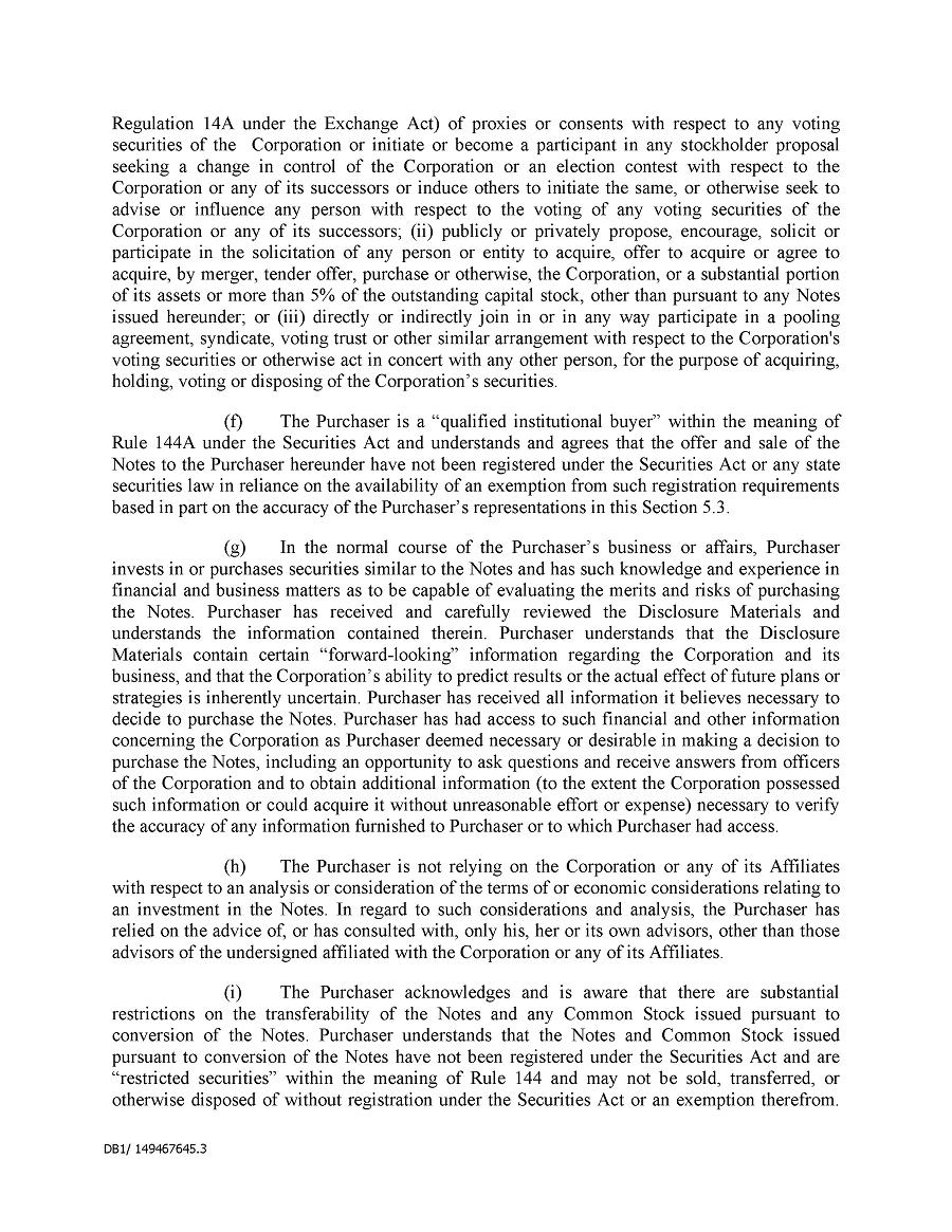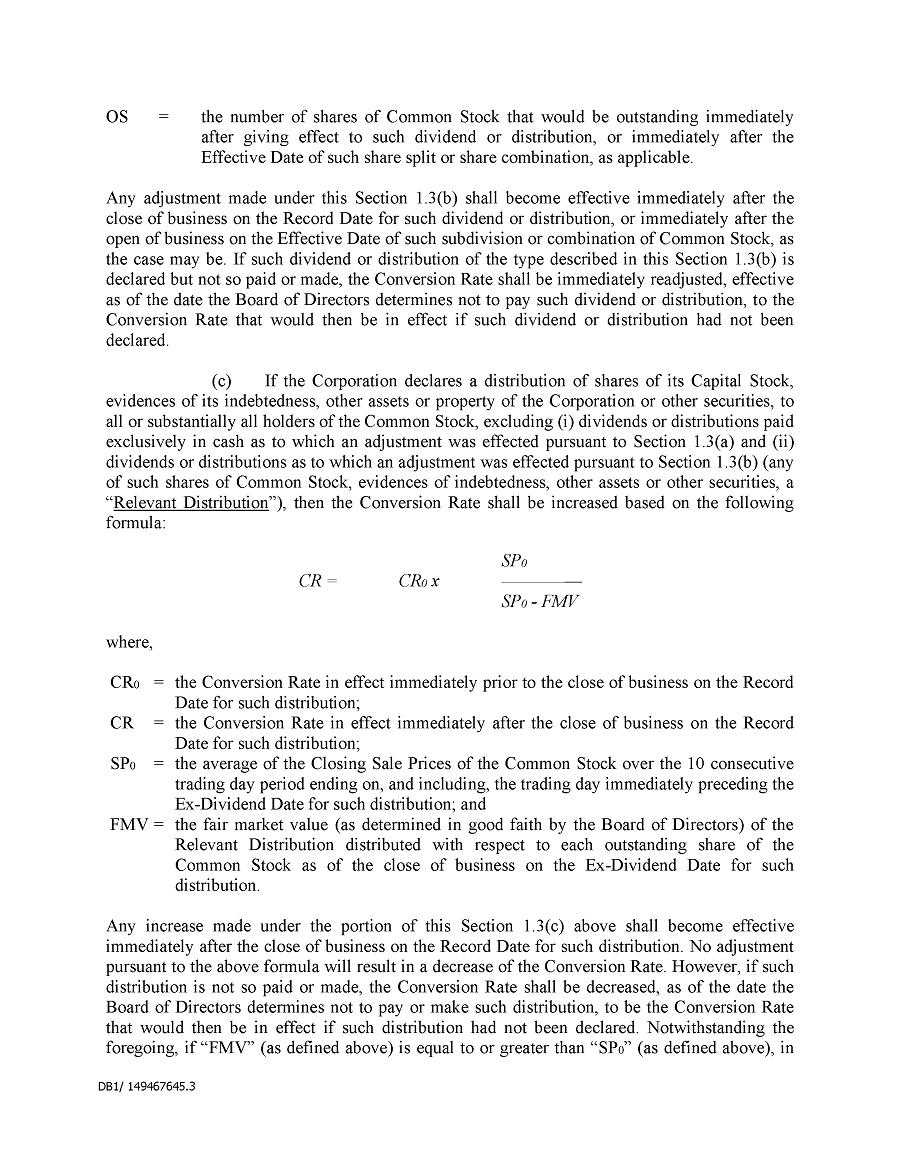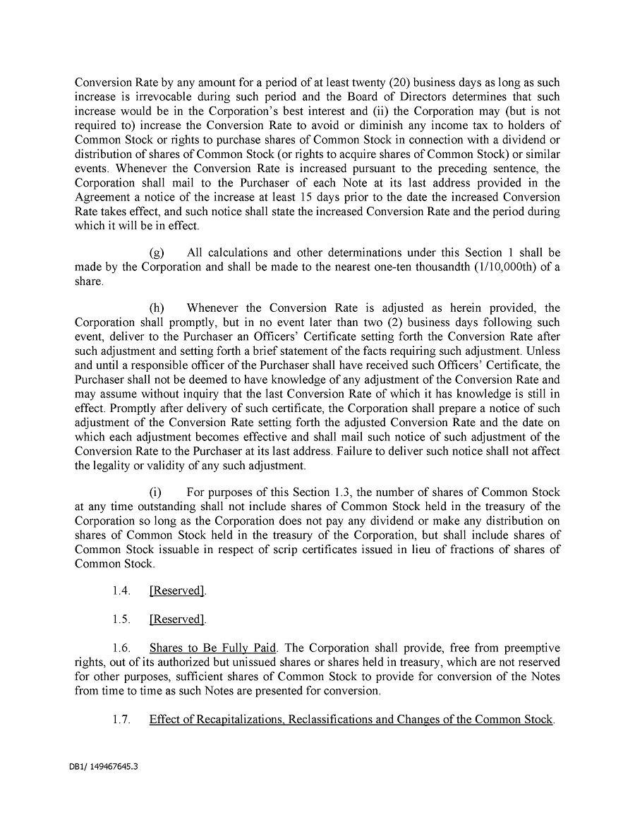 Dividend Reinvestment Plan. If you participate in the Company’s dividend reinvestment plan, this policy does not apply to purchases of the Company’s securities under that dividend reinvestment plan resulting from your automatic reinvestment of dividends paid on the Company’s securities. However, your election to participate in the dividend reinvestment plan, or to increase your level of participation in the plan, would be subject to this policy, including its applicable black-out periods. The policy also applies to your sale of any of the Company’s securities purchased pursuant to the plan.