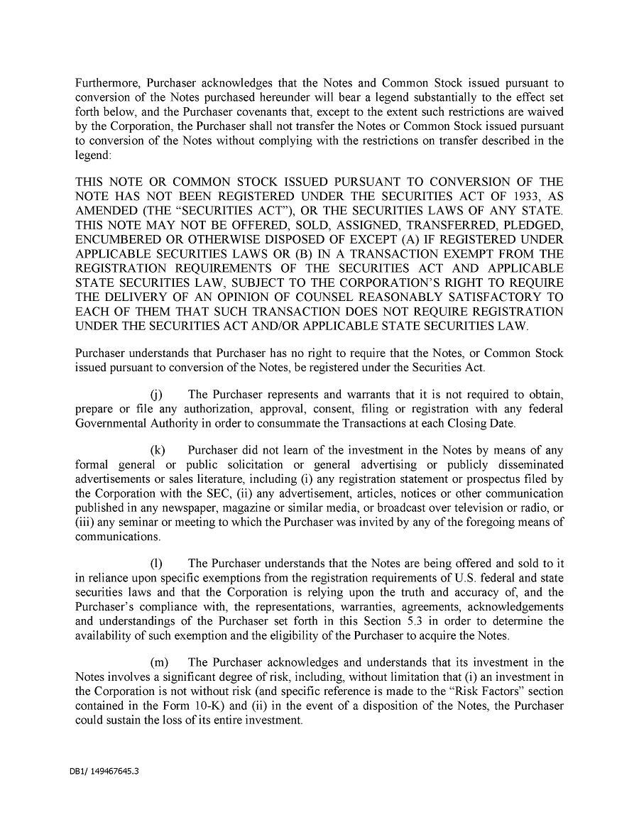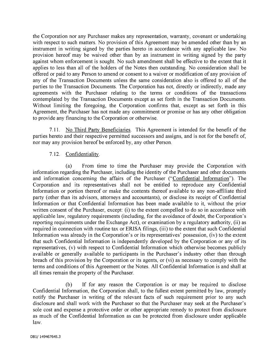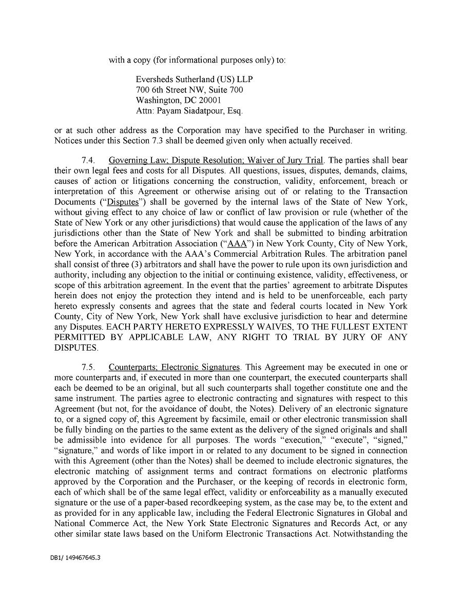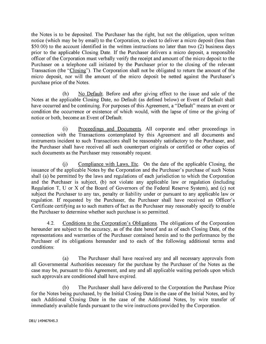 Dividend Reinvestment Plan. If you participate in the Company’s dividend reinvestment plan, this policy does not apply to purchases of the Company’s securities under that dividend reinvestment plan resulting from your automatic reinvestment of dividends paid on the Company’s securities. However, your election to participate in the dividend reinvestment plan, or to increase your level of participation in the plan, would be subject to this policy, including its applicable black-out periods. The policy also applies to your sale of any of the Company’s securities purchased pursuant to the plan.