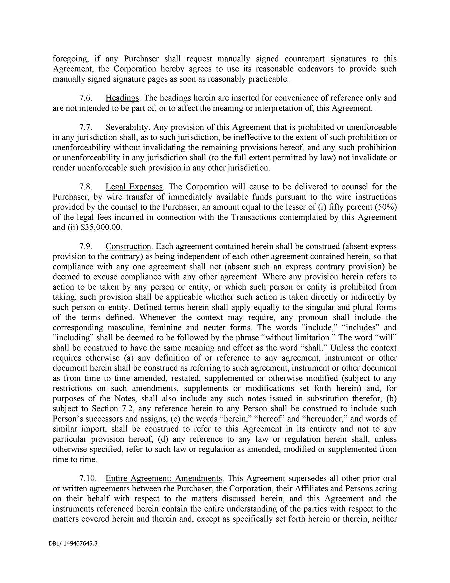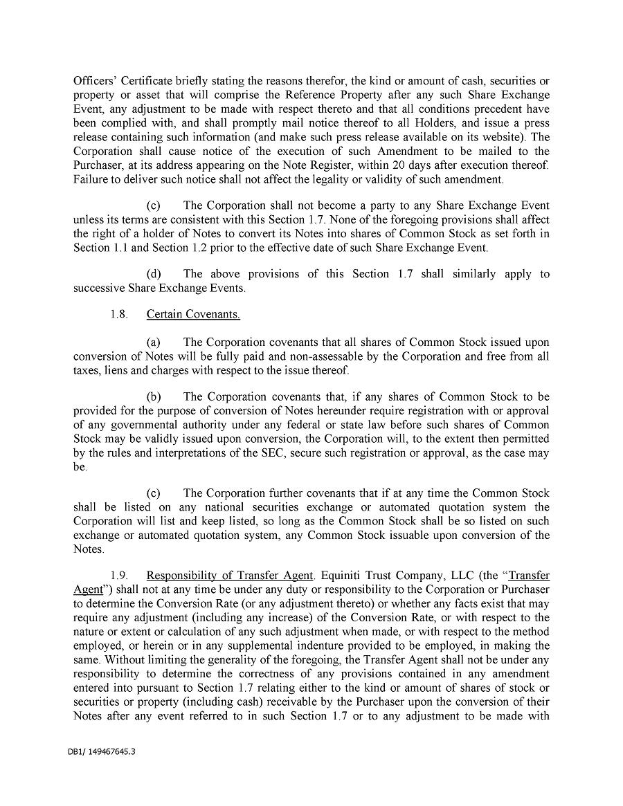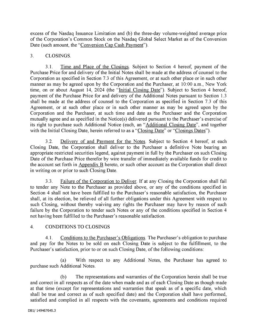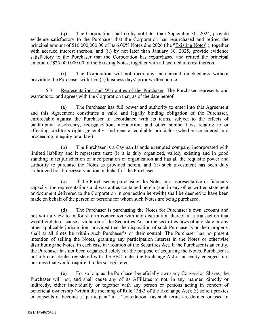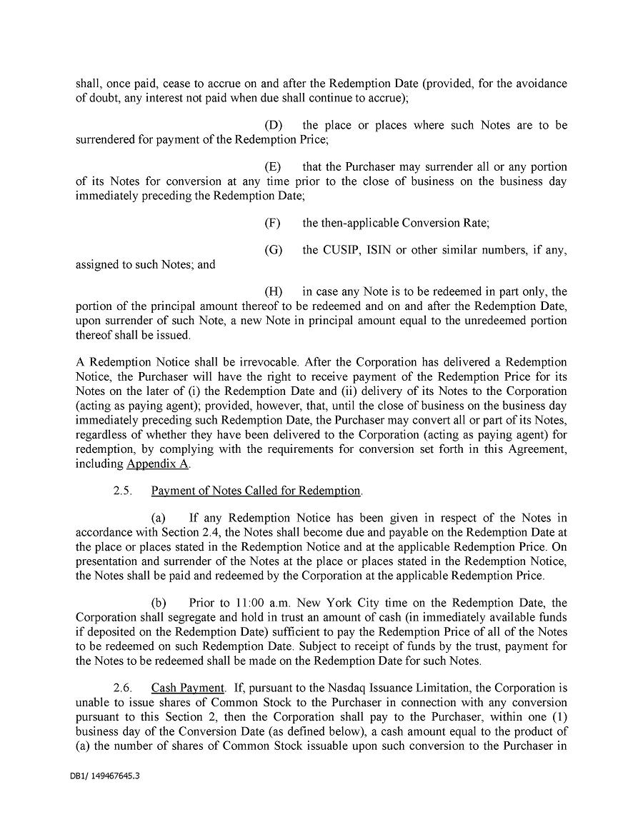 Dividend Reinvestment Plan. If you participate in the Company’s dividend reinvestment plan, this policy does not apply to purchases of the Company’s securities under that dividend reinvestment plan resulting from your automatic reinvestment of dividends paid on the Company’s securities. However, your election to participate in the dividend reinvestment plan, or to increase your level of participation in the plan, would be subject to this policy, including its applicable black-out periods. The policy also applies to your sale of any of the Company’s securities purchased pursuant to the plan.
