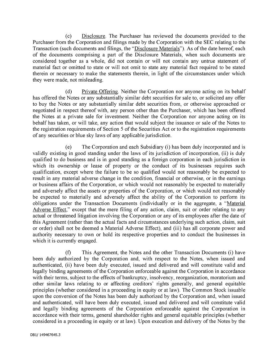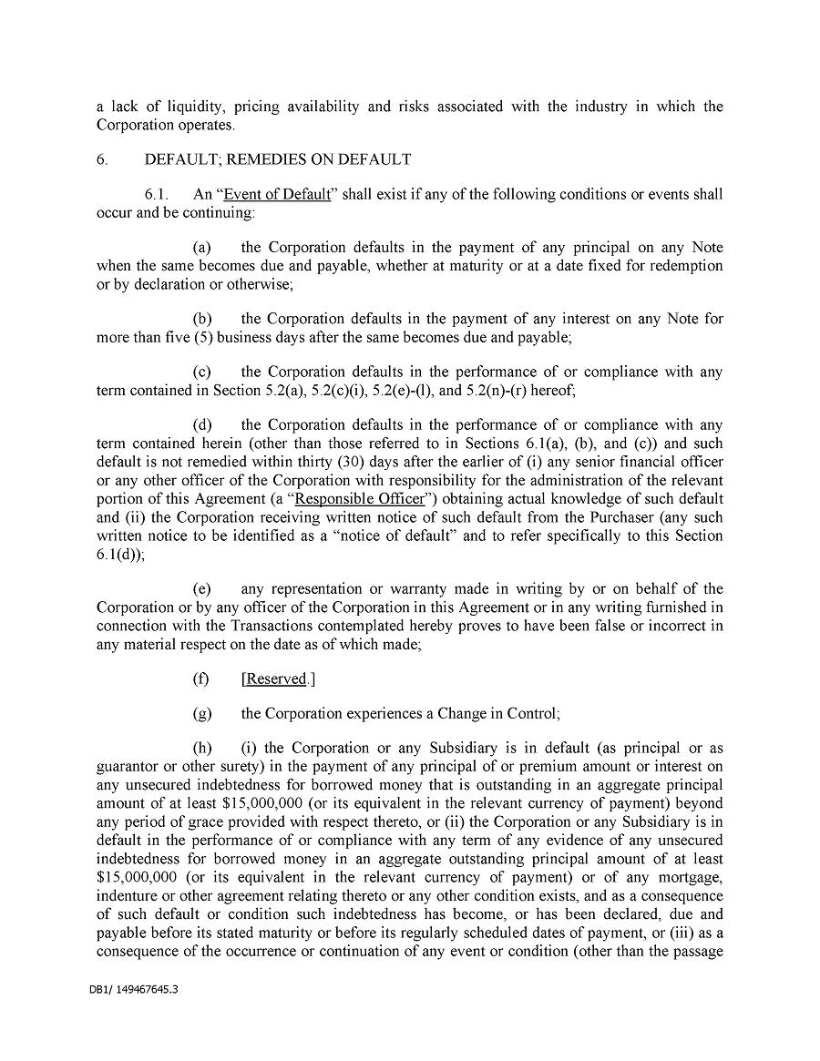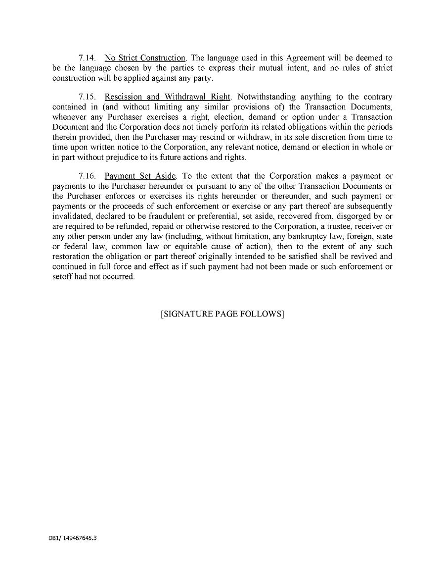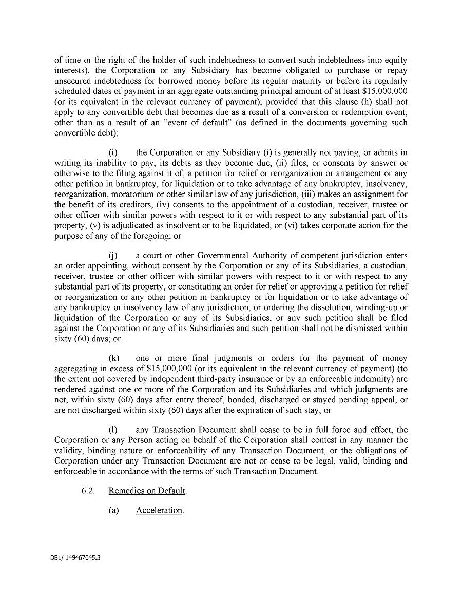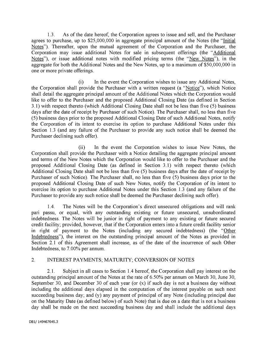 Dividend Reinvestment Plan. If you participate in the Company’s dividend reinvestment plan, this policy does not apply to purchases of the Company’s securities under that dividend reinvestment plan resulting from your automatic reinvestment of dividends paid on the Company’s securities. However, your election to participate in the dividend reinvestment plan, or to increase your level of participation in the plan, would be subject to this policy, including its applicable black-out periods. The policy also applies to your sale of any of the Company’s securities purchased pursuant to the plan.