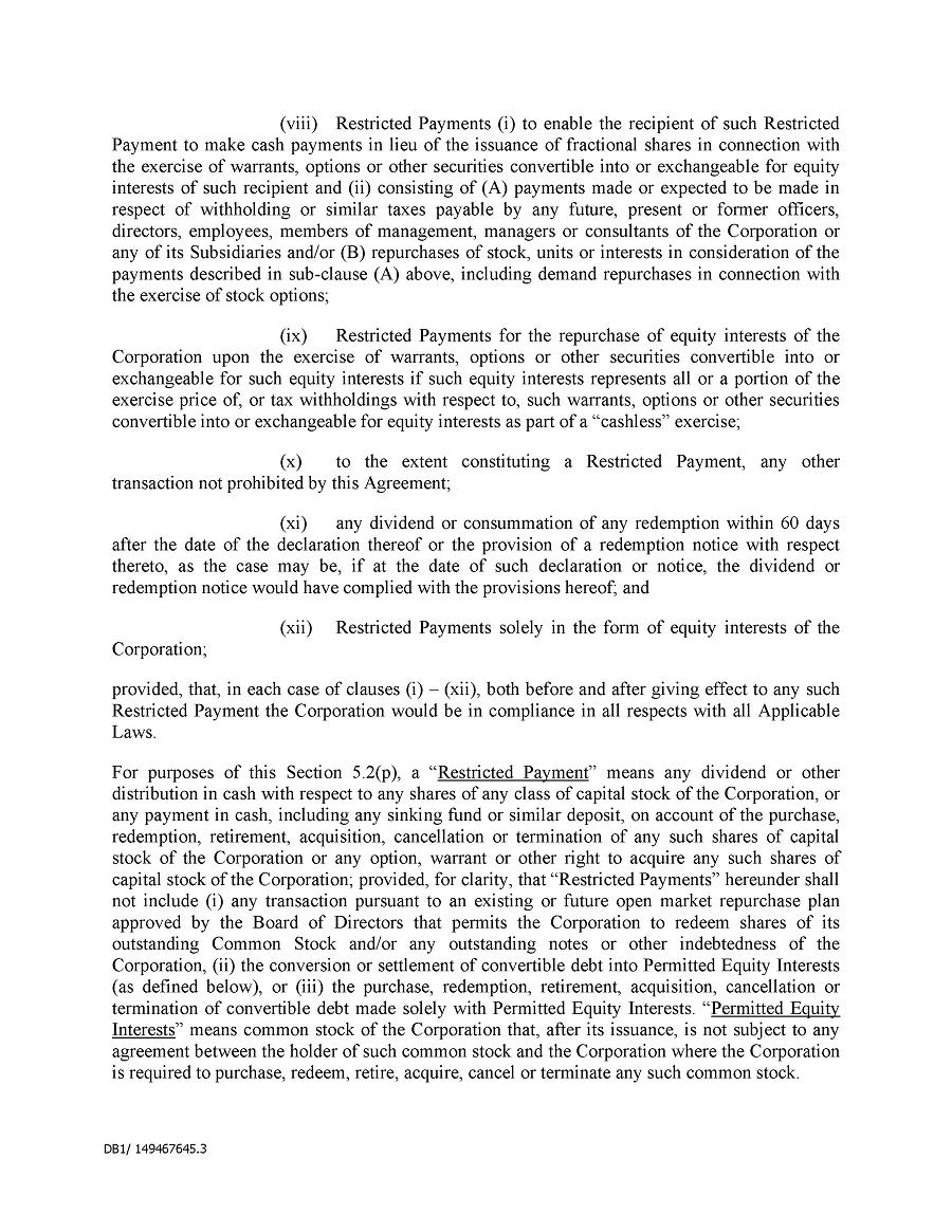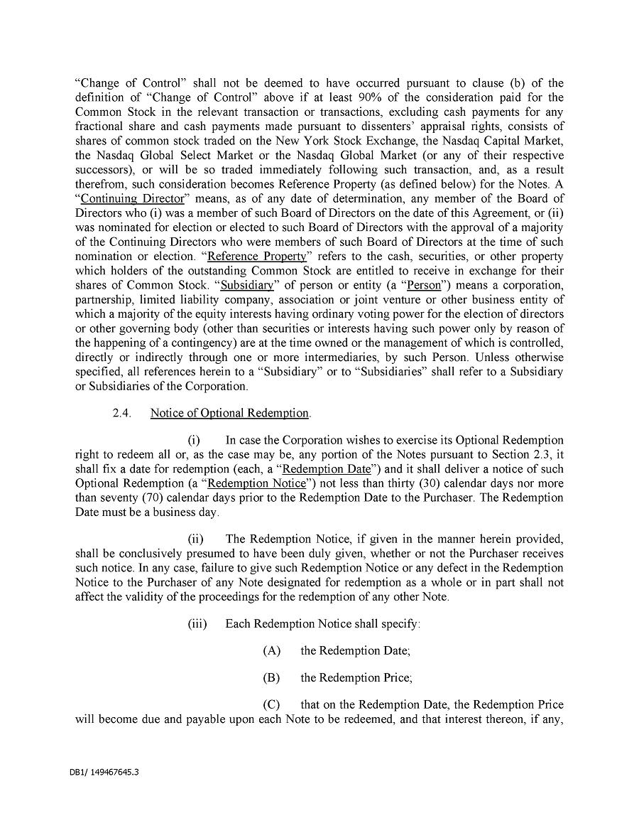 Margin Accounts and Pledges. Securities held in a margin account may be sold by the broker without the customer’s consent if the customer fails to meet a margin call. Similarly, securities pledged (or hypothecated) as collateral for a loan may be sold in foreclosure if the borrower defaults on the loan. Therefore, because a margin sale or foreclosure sale may occur at a time when the pledger is aware of material, non-public information or is otherwise not permitted to trade in the Company’s securities, Covered Persons are prohibited from holding the Company’s securities in a margin account or pledging such securities as collateral for a loan. An exception to this prohibition may be granted where a Covered Person wishes to pledge the Company’s securities as collateral for a loan (not including margin debt) and clearly demonstrates the financial capacity to repay the loan without resort to the pledged securities. In this regard, any Covered Person who wishes to pledge the Company’s securities as collateral for a loan must submit a request for approval to the Company’s Chief Compliance Officer at least two weeks prior to the proposed execution of the documents evidencing the proposed pledge.