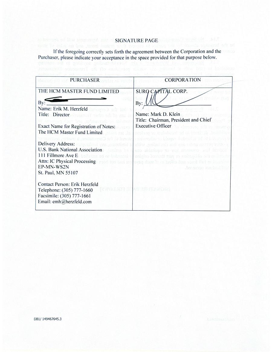 I hereby certify that I have received a copy of SuRo Capital Corp.’s Insider Trading Policy, read it, and understand that the Insider Trading Policy contains the expectations of SuRo Capital Corp. and its affiliated entities regarding my conduct. Furthermore, I agree to comply with the Insider Trading Policy.